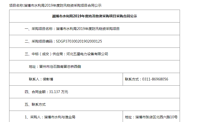 熱烈祝賀河北五星淄博市水利局2019年度防汛物資采購(gòu)項(xiàng)目一舉中標(biāo)!